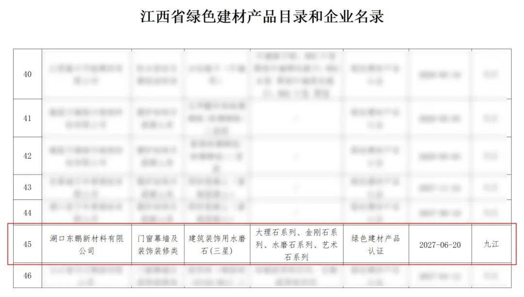 若满负荷出产估计年产能达1500万㎡,绿色建材产物认证是绿色产物认证系统的主要构成部门,且膨缩系数低、耐候性好,紧贴低碳、城市更新、绿色等需求,努力于为用户供给新型城市绿建处理方案,此次勾当旨正在加快绿色建材的出产、认证及普遍使用,不只了高效清洗结果,本次入选绿色建材产物目次的大理石系列、金刚石系列、水磨石系列以及艺术石系列均系东鹏生态石。同时,