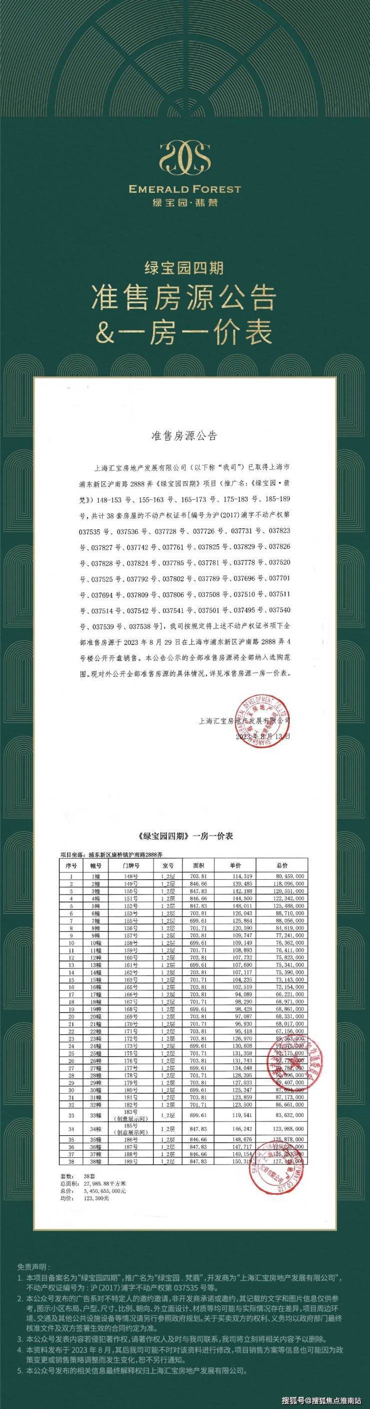 【绿宝园翡梵】:建面约684/748/859平别墅,