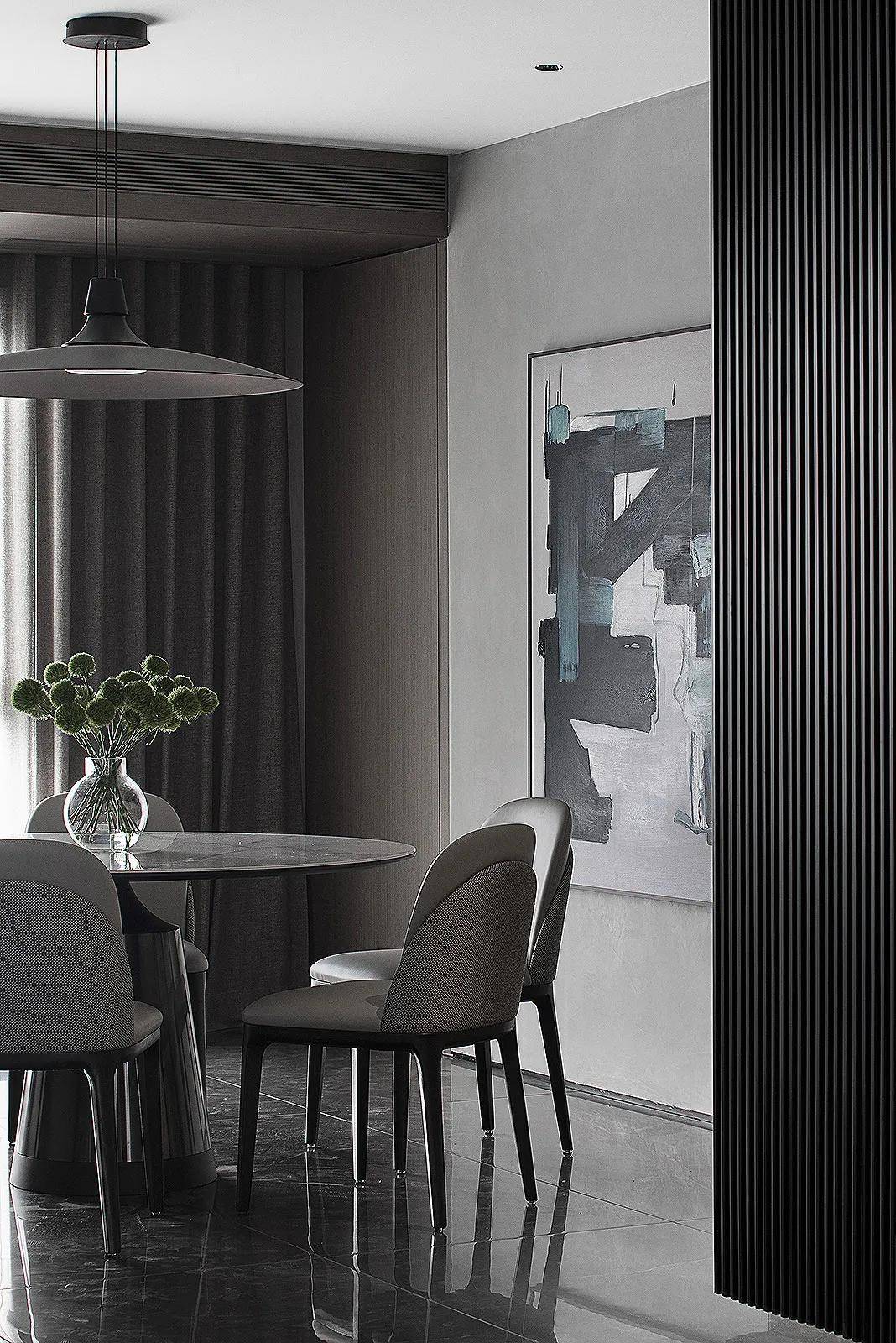 舒服的配色,搭建一个容纳心灵的失乐土。没有了公共区域的健壮感触感染,浅灰色艺术漆带来低调的高级感,添加空间精美质感。线条愈加利落流利。而地面烟熏橡木色地板,尽量削减隔绝距离,而有了质感取生命力。而纤细的线条,抹去锋利的棱角,其次是天然光取人制光的合理搭配,使空间愈加地全体同一,还视线一片清明。